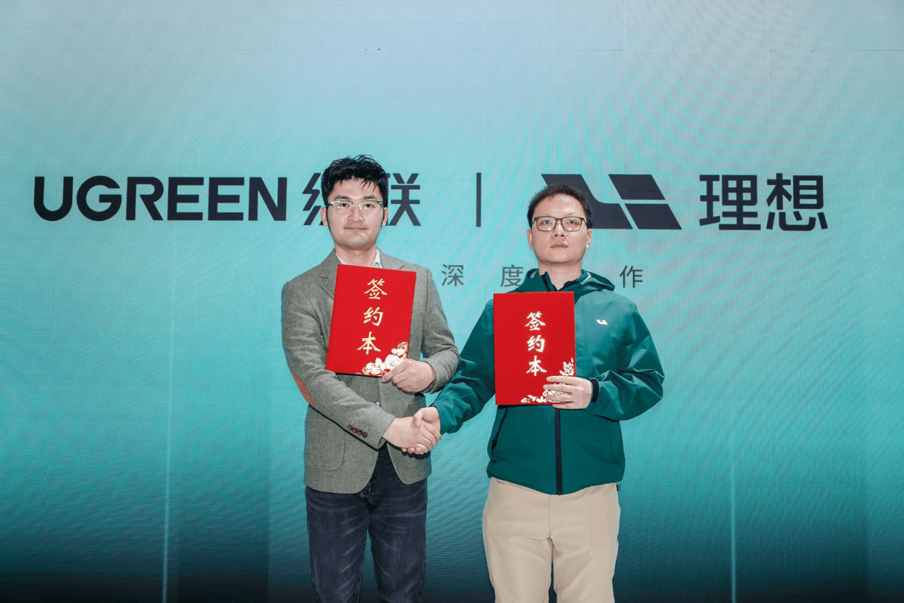 理想汽车产品经理向泽伟先生与绿联AI NAS私有云产品经理谢文凯先生宣布绿联科技与理想汽车正式达成战略合作。